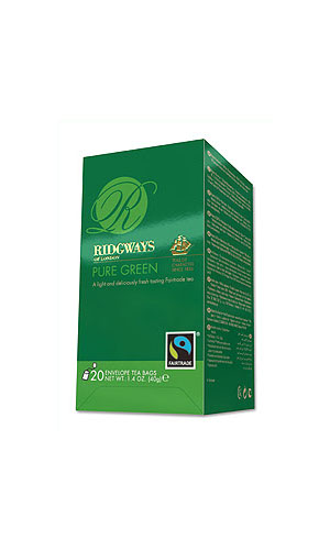 The origins of green tea date back over 3000 years and it is believed to contain beneficial substances for health as well as being a deliciously refreshing drink. Ridgways green tea is a delicately fragrant blend that captures the essence of this ancient tea. The pale amber liquor breathes hints of freshly-mowed grass in a summer meadow. (Format: string, tag & envelope)
